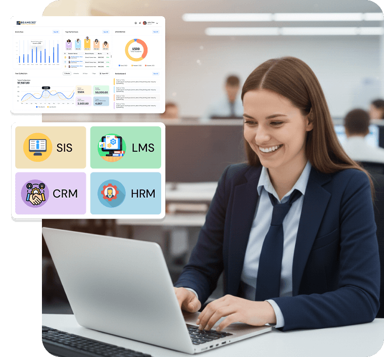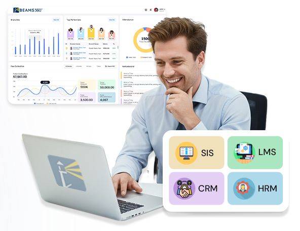 BEAMS360® is a fully unified, AI-powered school ERP platform that replaces multiple disconnected systems with one intelligent solution. Unlike traditional software that handles isolated functions, BEAMS360® integrates academics, admissions, finance, HR, and communication into a single ecosystem for complete visibility.