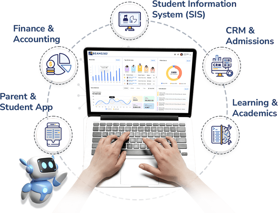 BEAMS360® centralizes school admissions, academics, finance, HR, communication, and reporting into one unified AI-driven school ERP system.